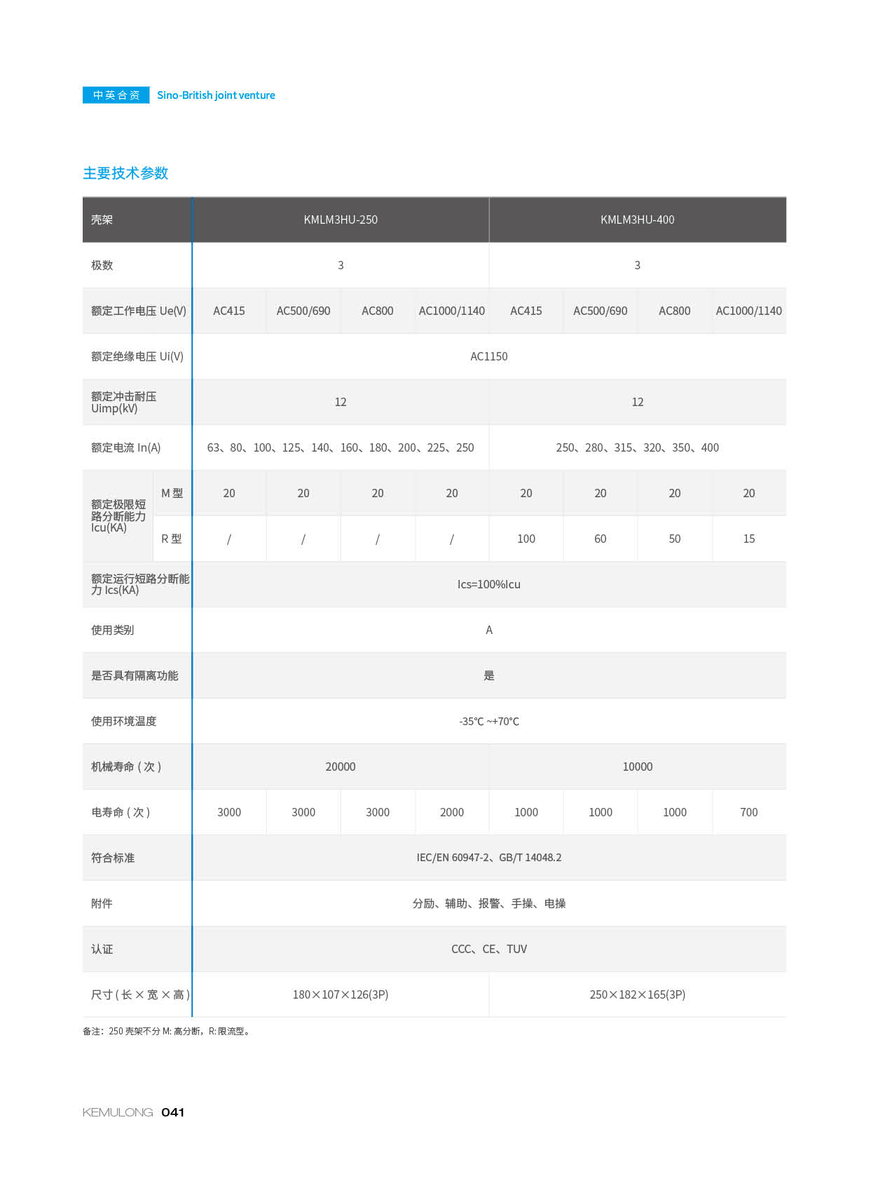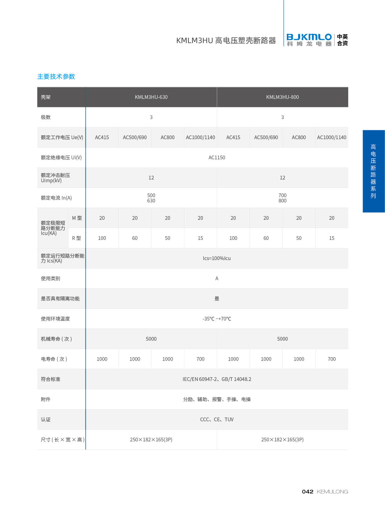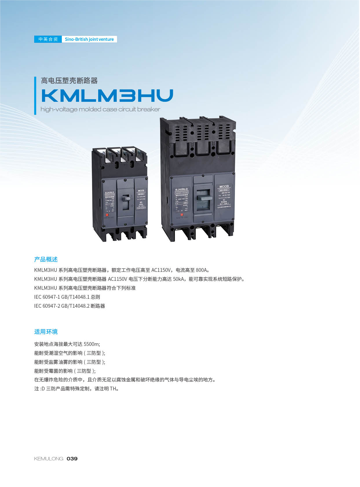 KMLM3HU 系列高电压塑壳断路器符合下列标准