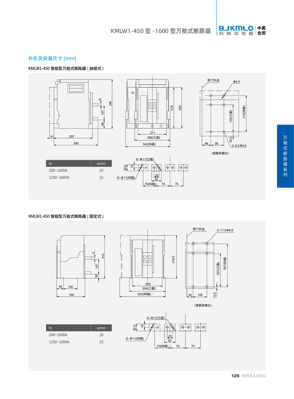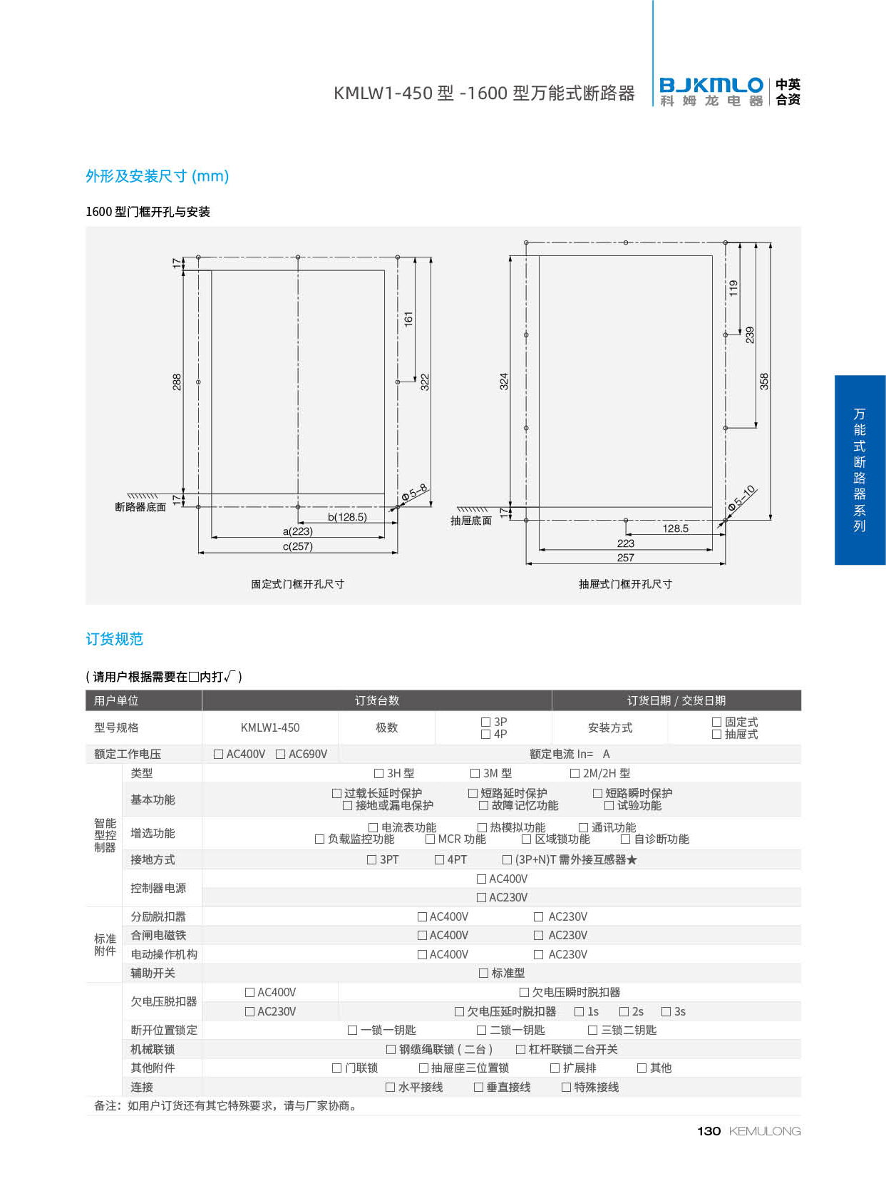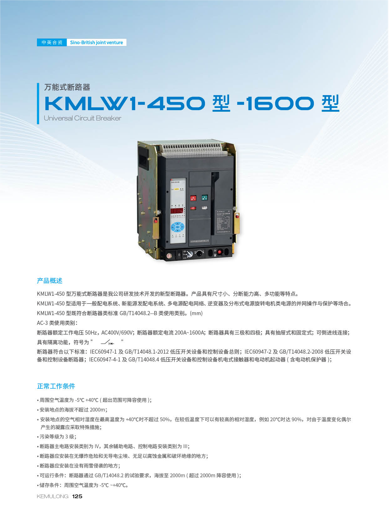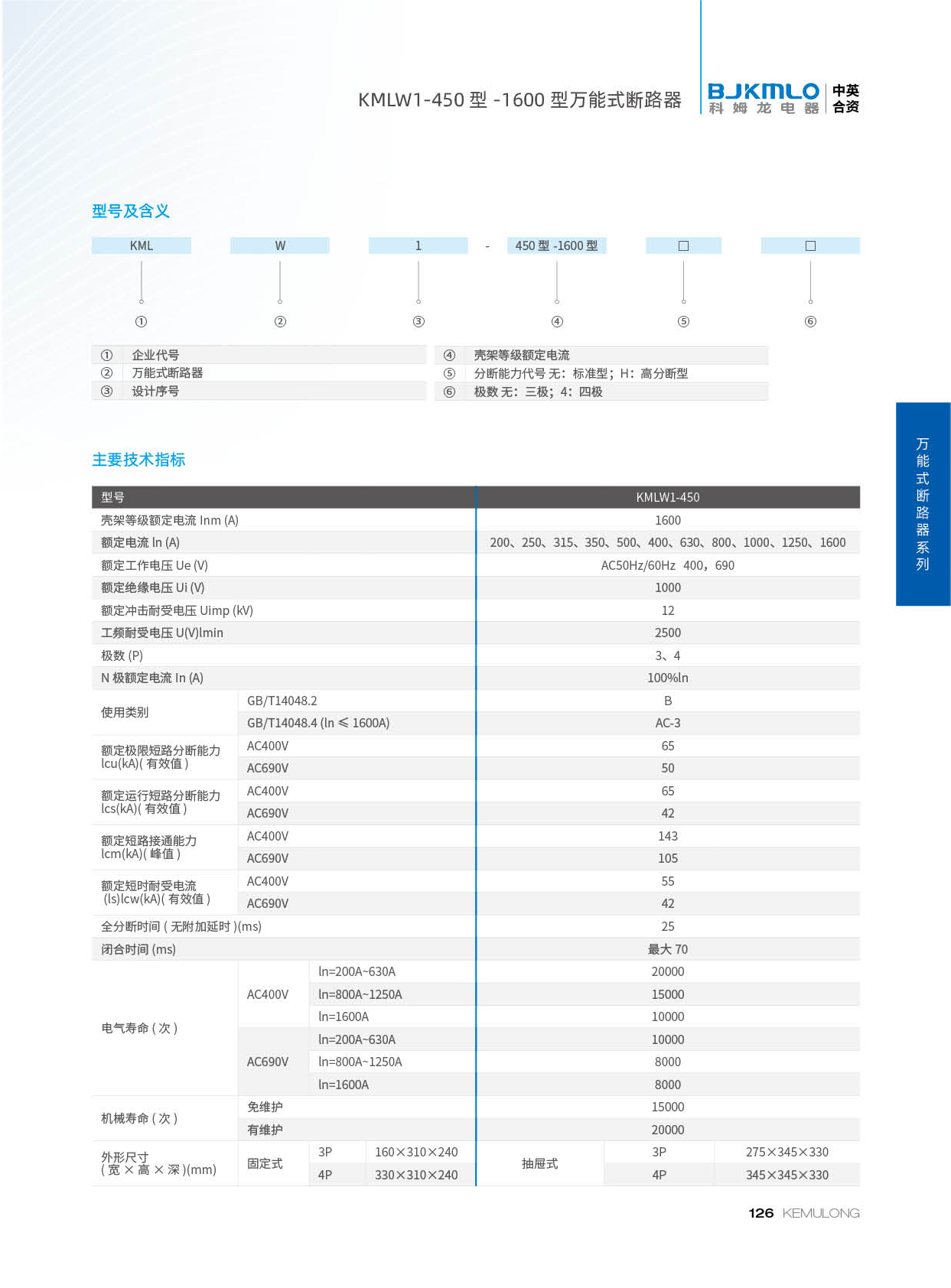 KMLW1-450 型万能式断路器是我公司研发技术开发的新型断路器。产品具有尺寸小、分断能力高、多功能等特点。