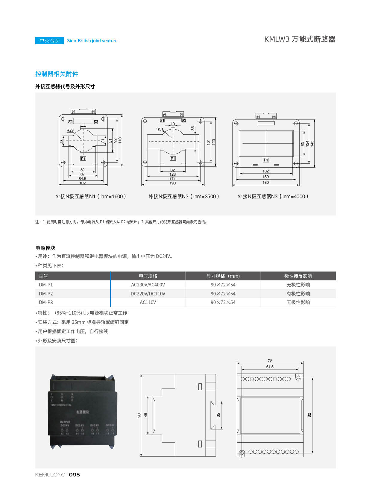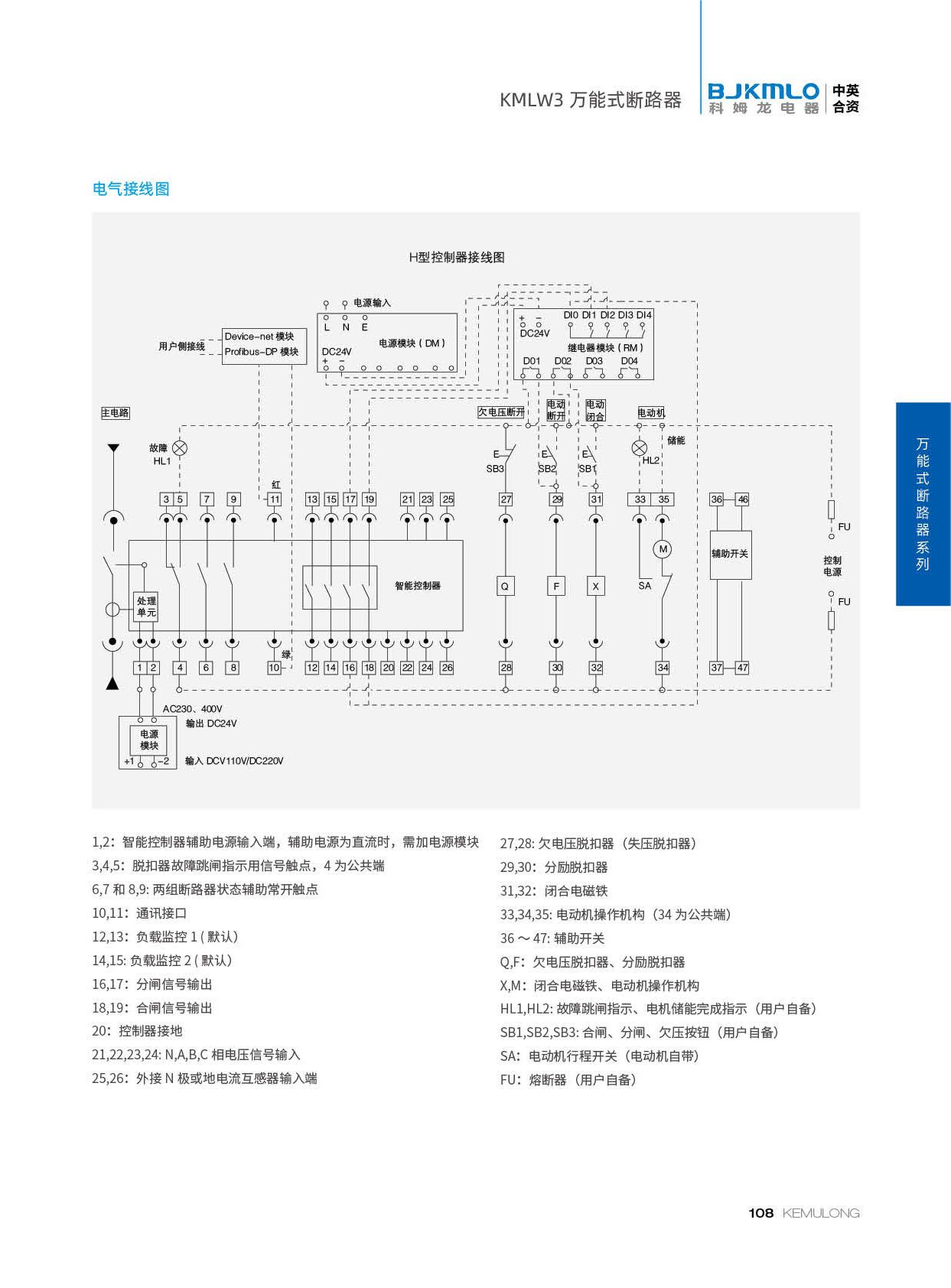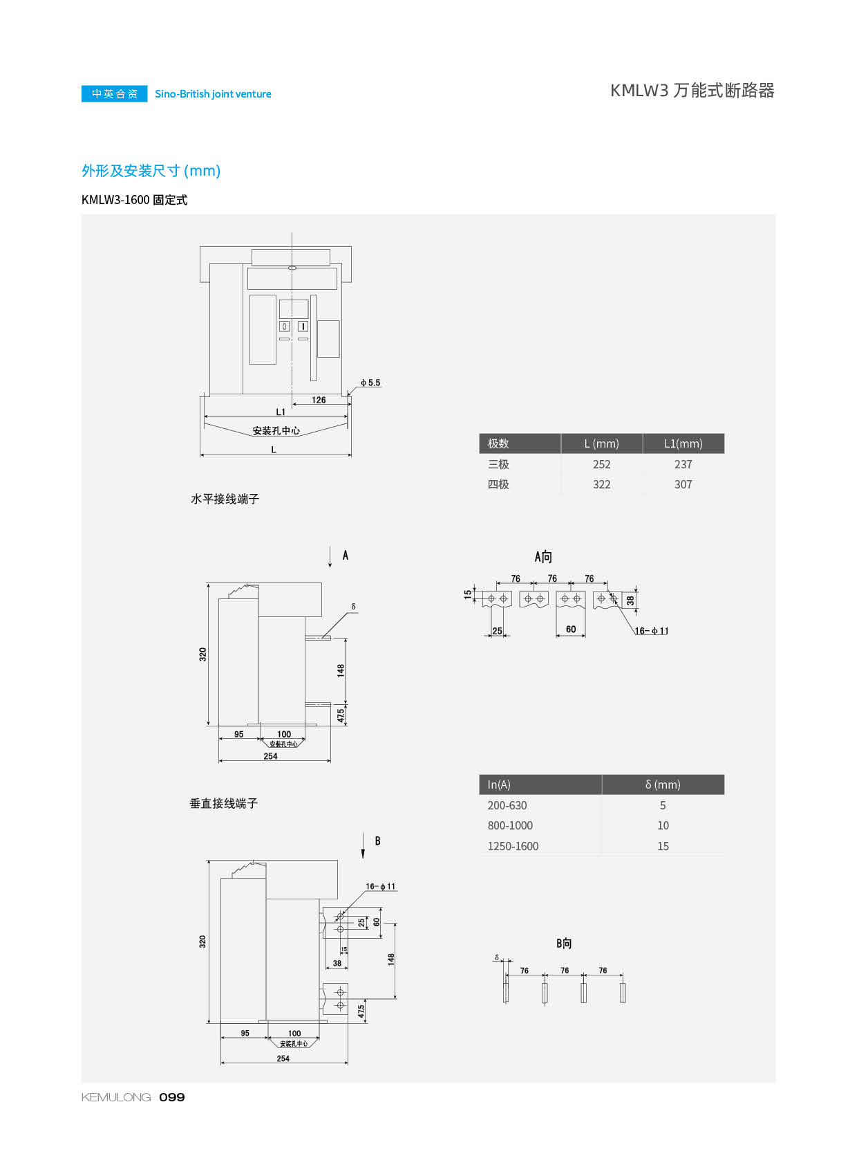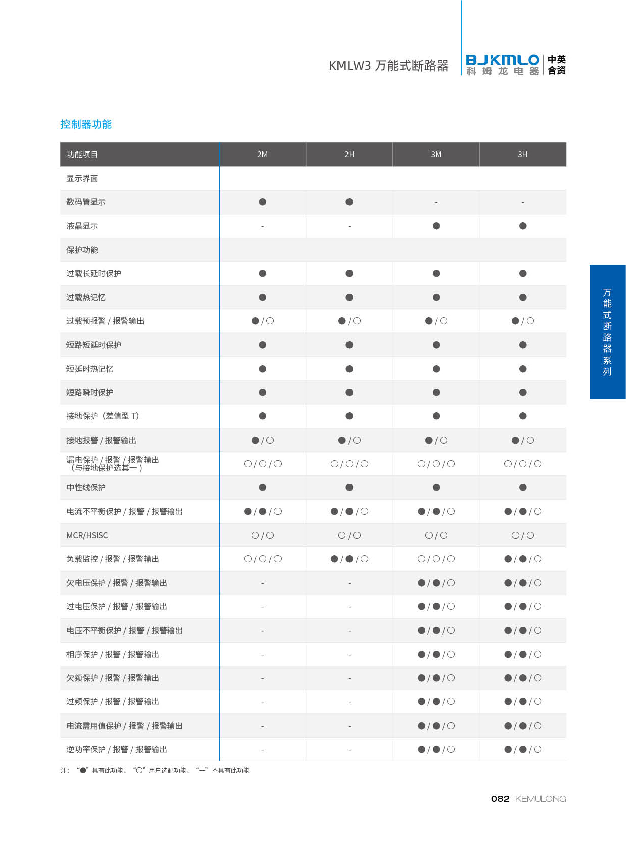 KMLW3 系列万能式断路器,适用干交流50Hz、额定电流 200A-4000A、额定绝缘电压1140V、额定工作电压AC400V/AC690V/AC1140V的配电网络中,用来分配电能和保护线路及电源设备免受过载、欠电压、短路、单相接地等故障的危害。同时也具有隔离功能。断路器具有 多种保护功能,高精确的选择性保护,提高了供电可靠性。